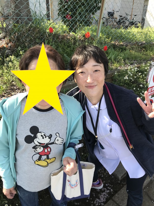 目の前にある小学校の周りはお花がたくさん!看護師のS氏と一緒に撮影~