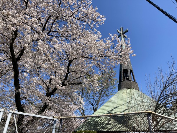 丘の上教会にある大きな桜の木に沢山の花が咲いてくれました。