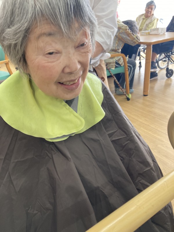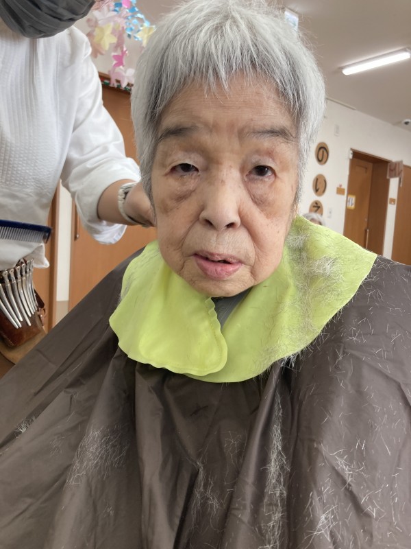 カットが終わるとお互いに「どう似合う?これで何歳か若返えったかしら」と笑いながら話されておりました。