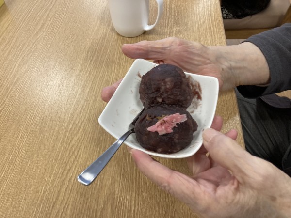 桜の塩漬け付手作りおはぎ★グループホームみんなの家・横浜綱島★