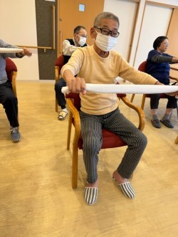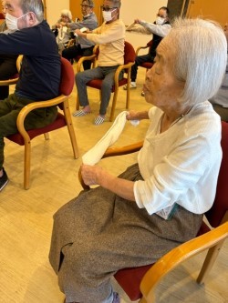 本日は、タオルを使っての「タオル体操」を皆さんと元気よく行いました。