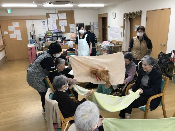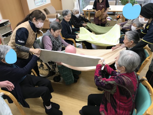 皆様上手にタオルでボールを投げ隣の方に繋げていました。なかなか難しかったですけれども
