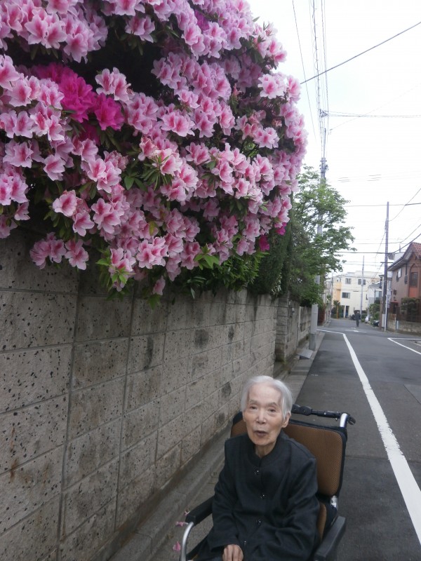 曇り空の中、雨が降らないうちにお散歩です。今はつつじが真っ盛りでした。
