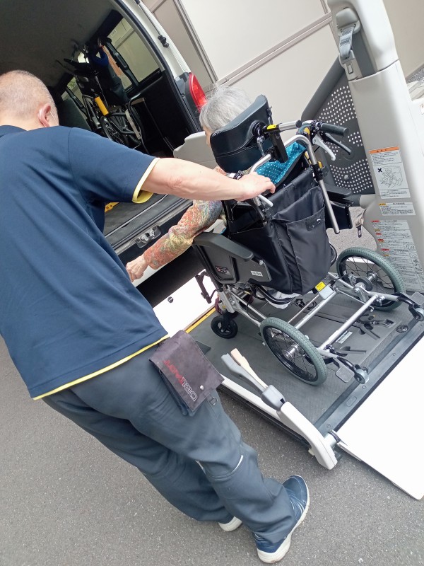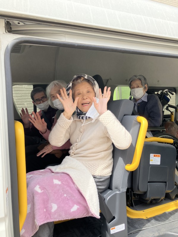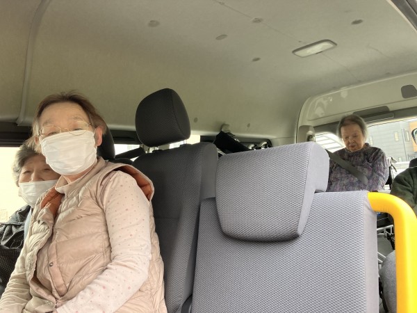 車に乗るのは久しぶり…とお花だけではなく、いろいろなお店や町の中の様子も楽しまれています。古くから住んでいらっしゃる方はここには昔〇〇があったんだなどと詳しくお話ししてくださいます。