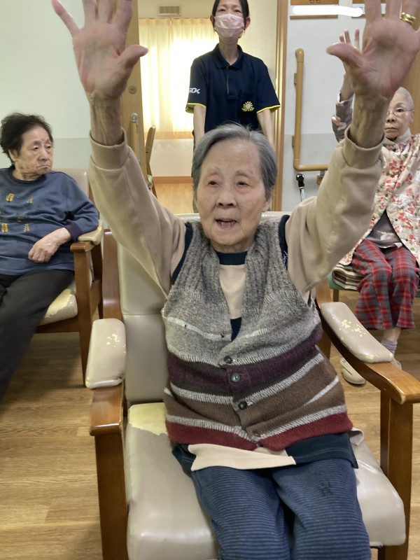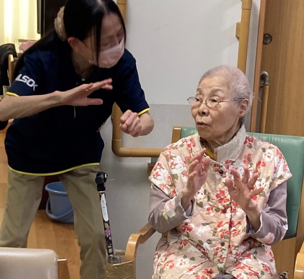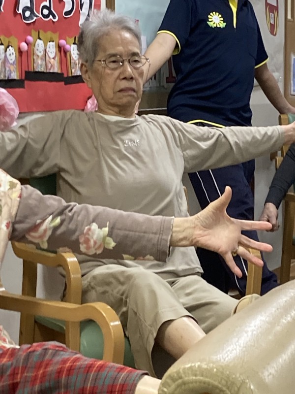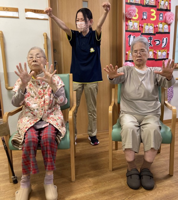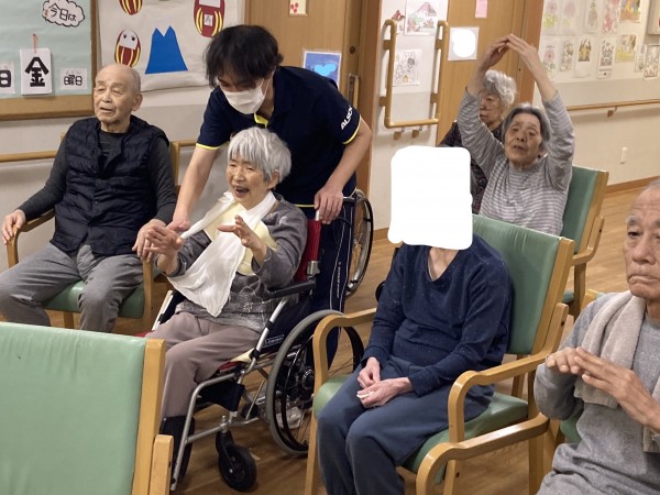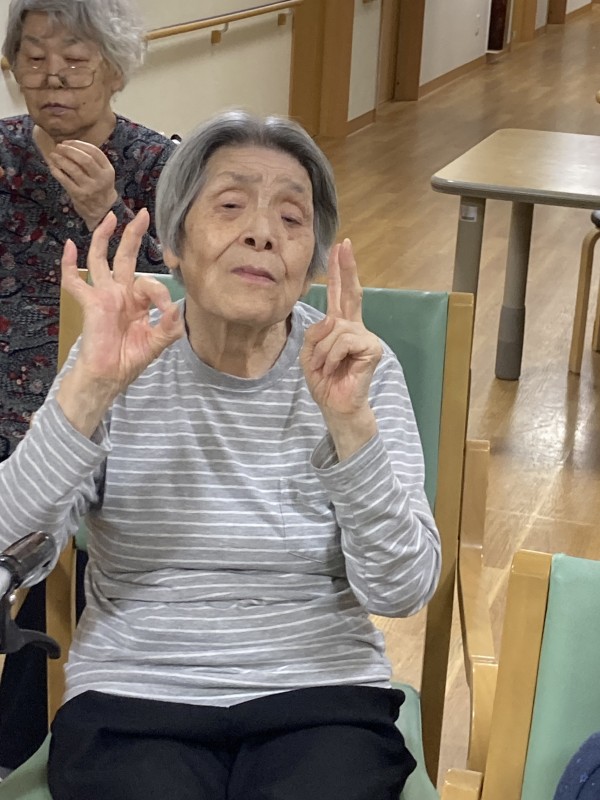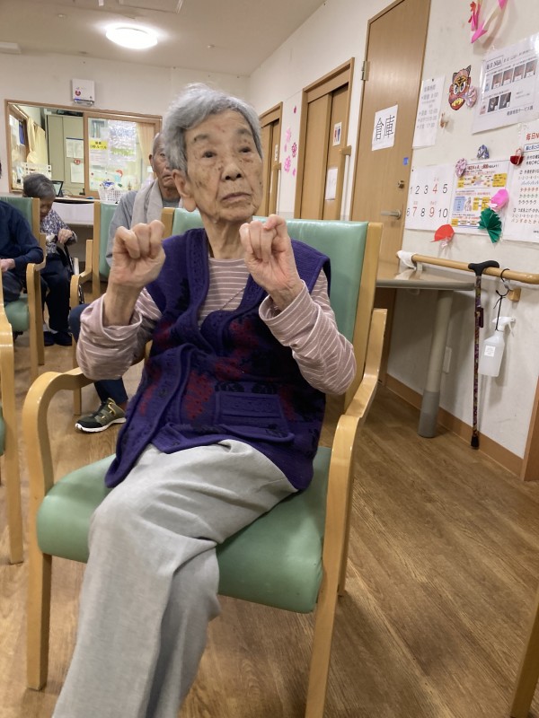 大きく万歳をしたり職員と共に一緒に声を出しながら行い、楽しみながら行ないましたよ(#^.^#)