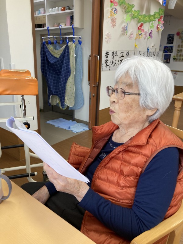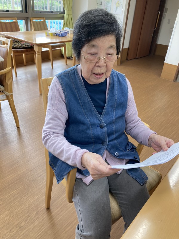 「みんなの家 川崎中野島」本日は「音読」の時間です。