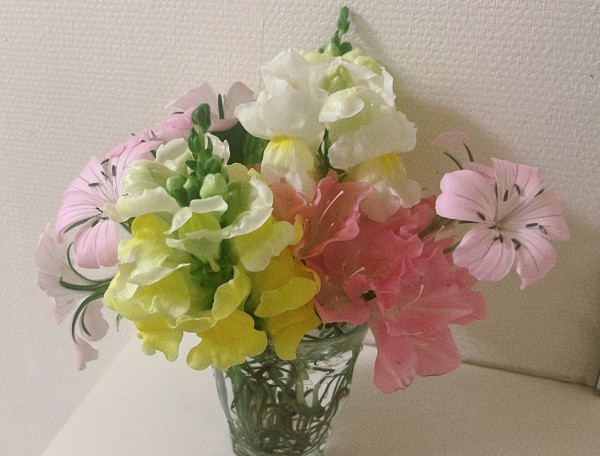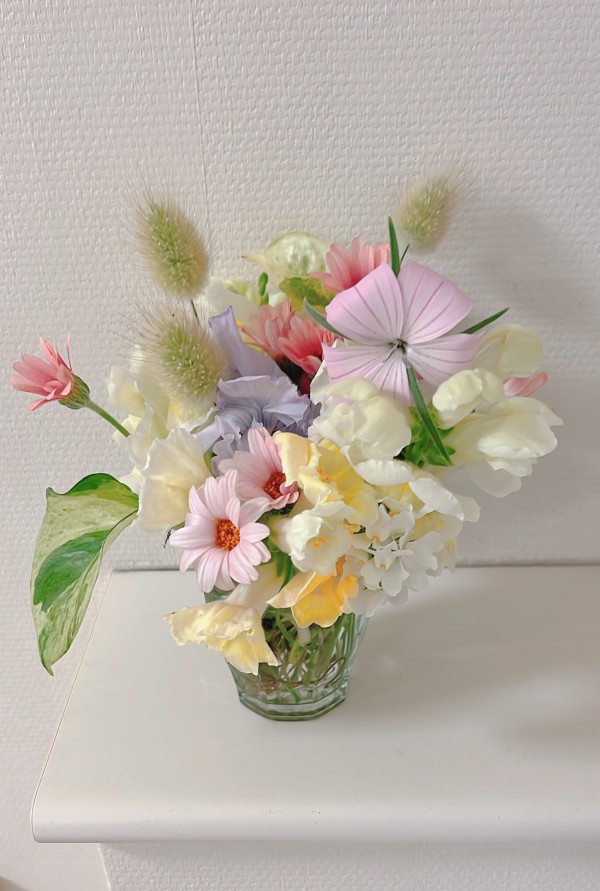 アミカの郷川口の入り口に、毎日朝摘みのお花を飾っています。