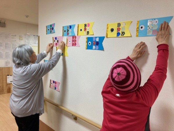 ブログ担当のママがご紹介するのは、1階フロアーで鯉のぼり制作をしているご様子です。