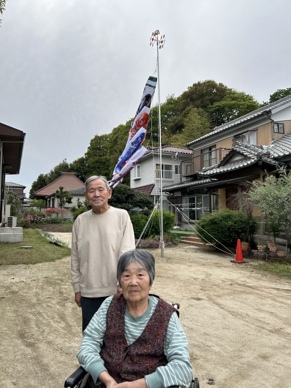 施設のご近所さんのご厚意でお庭に飾ってある立派な鯉のぼりを見学させていただきました。