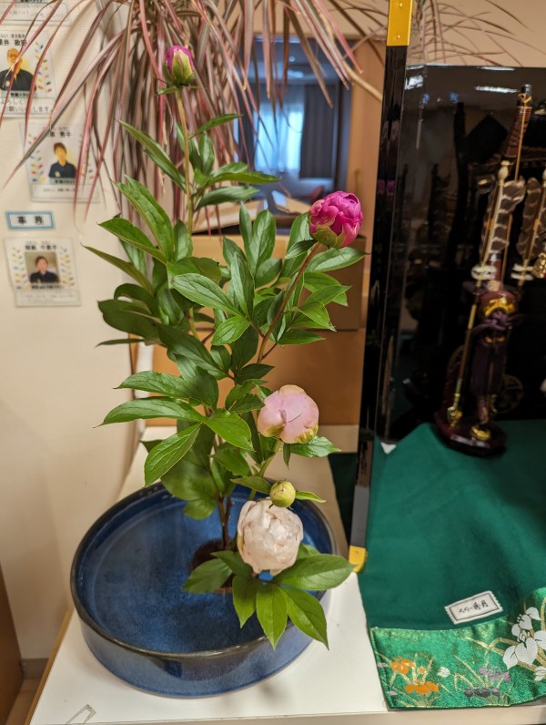 早速、職員のお花の先生に活けていただき、