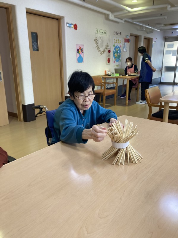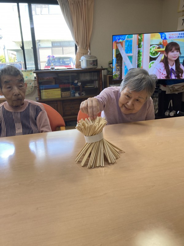 1階でも割り箸ジェンガゲーム(順に割り箸を抜いていく。バランスを崩し倒した方が負け。割り箸を多く抜いた方が優勝。) を行いました。皆さん真剣に無言で勝負されていました。崩れる瞬間は悲鳴を上げられるなど、大盛り上がりでした(^_^)/
