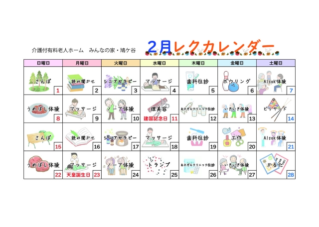 2月のレクカレンダー