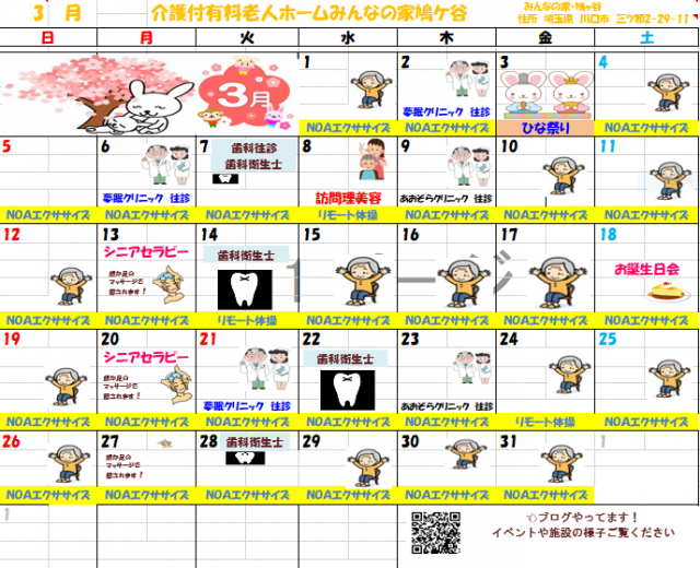 ☆3月のレクリエーションカレンダー☆