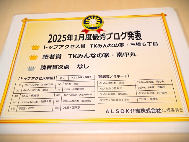 ★☆三橋6丁目のブログが『トップアクセス賞 』表彰‼1月度優秀ブログ発表2025年令和7年✨ 『みんなの家 三橋6丁目 介護ブログ』☆★