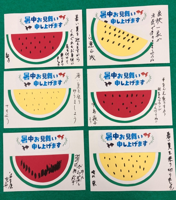 暑中見舞いを書いています。