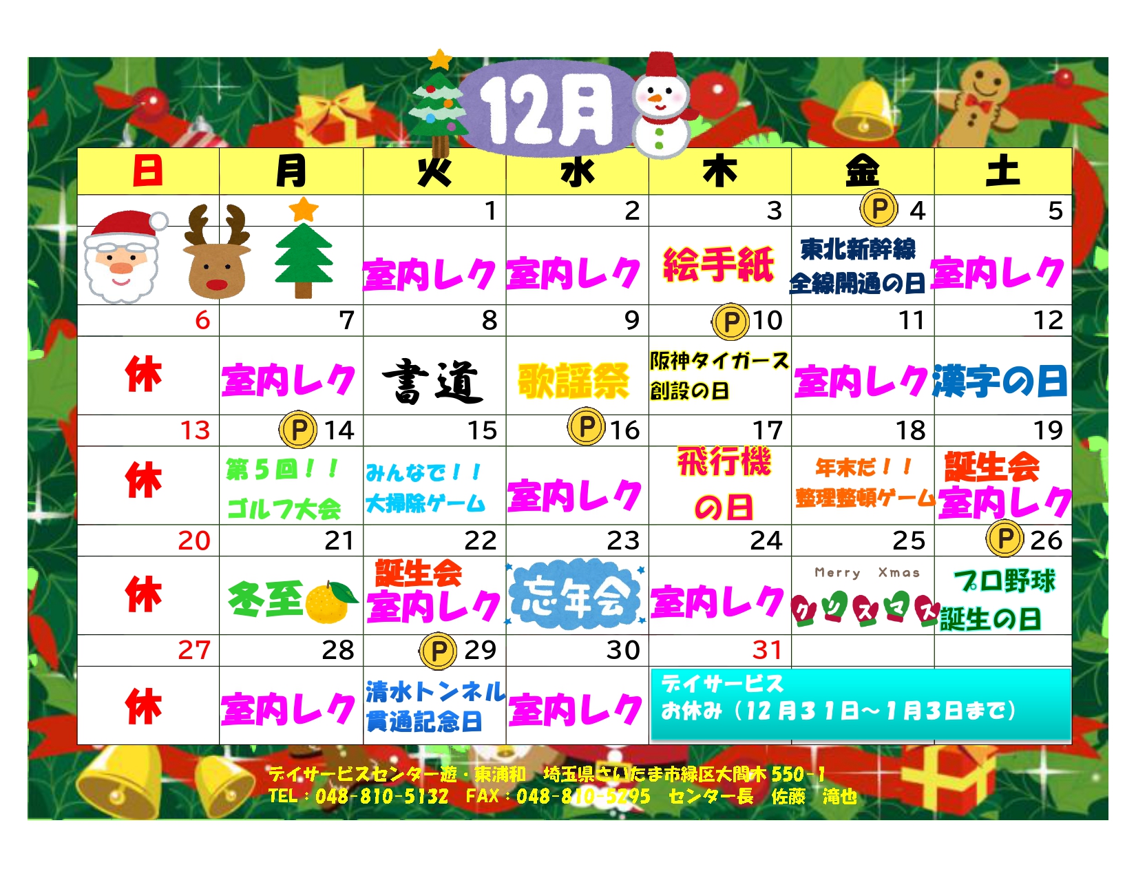 12月のレクリエーションカレンダー