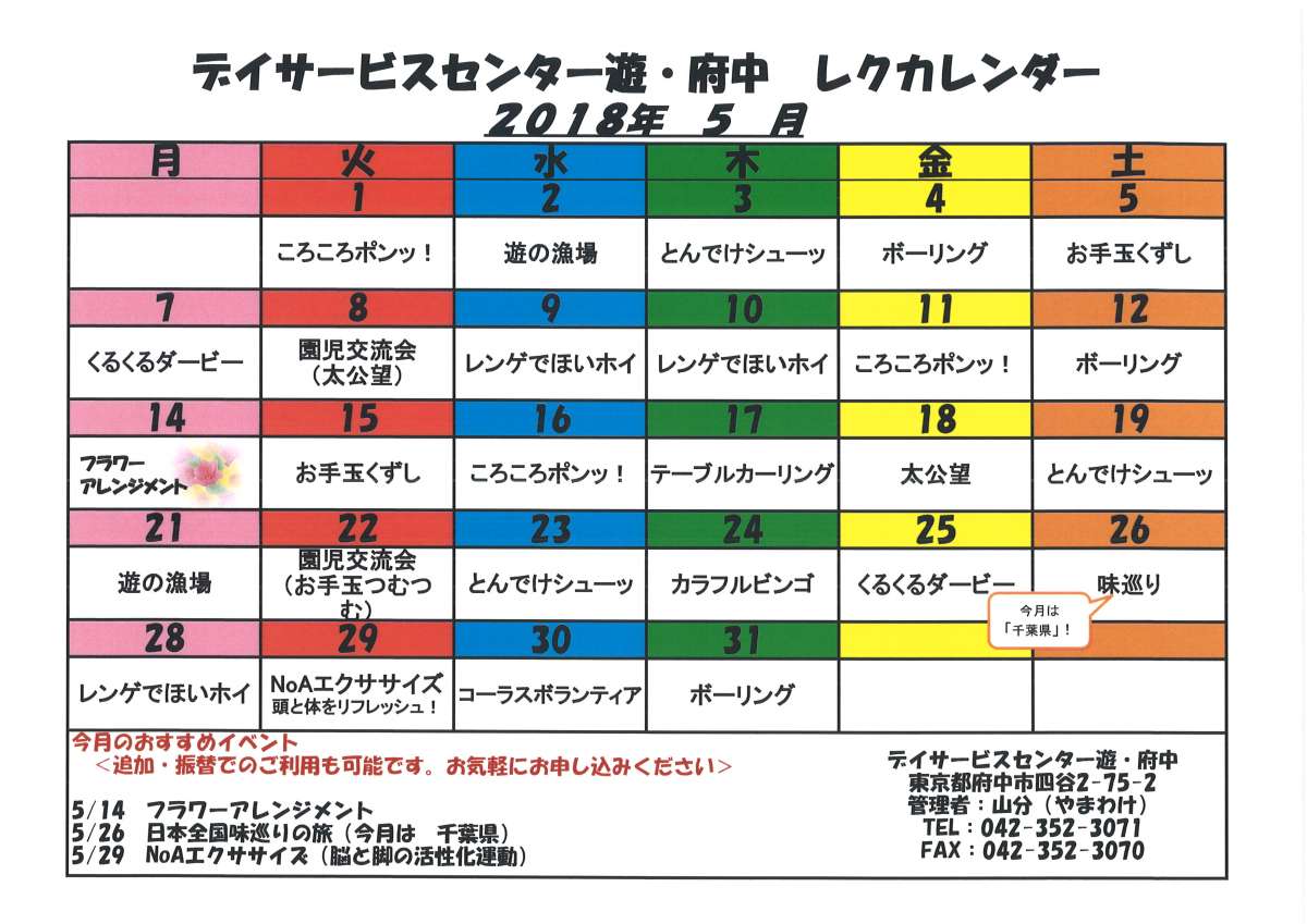 5月のレクリエーション予定