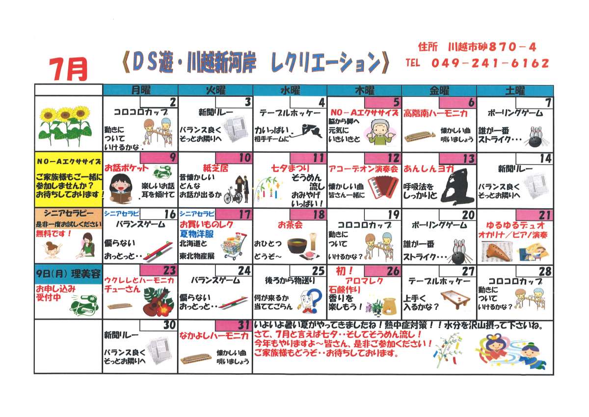 7月のレクリエーションカレンダー