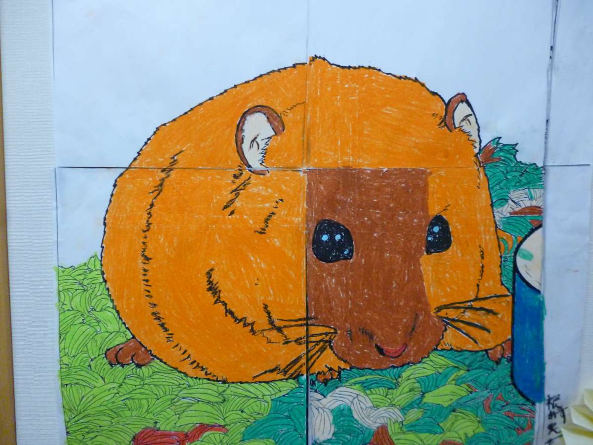 最高齢N様、恐怖のハムスターの絵を鑑賞される。