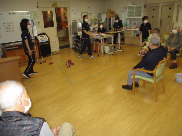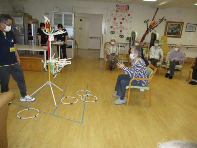 今日の運動レクレーションは『輪投げ』です。上手く出来るかな・・・