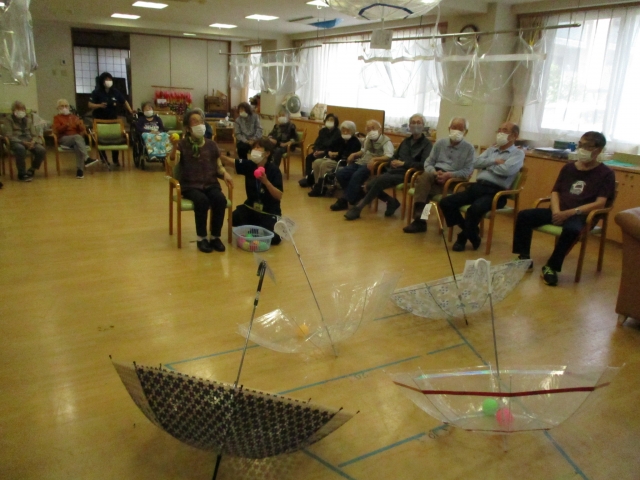 今日の運動レクレーションは『傘さかさゲーム』です!