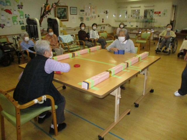 今日の運動レクレーションは『テーブルホッケー』です!今回は優勝決定戦の女性対決がすごかった!