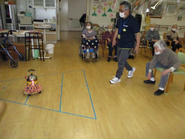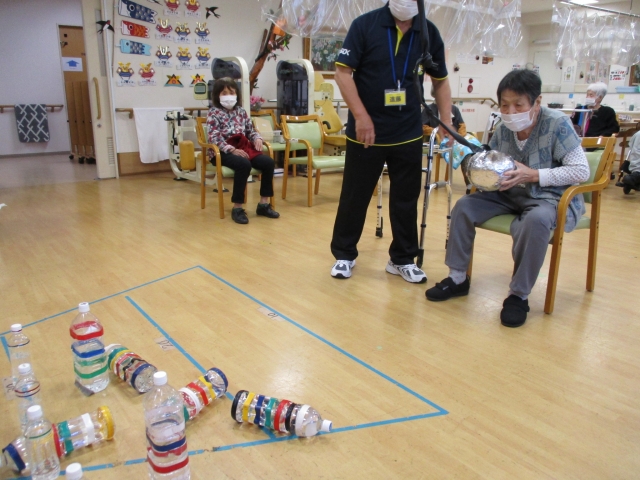 今日の運動レクレーションは『空中ボーリング』です!日頃のストレス発散しました!
