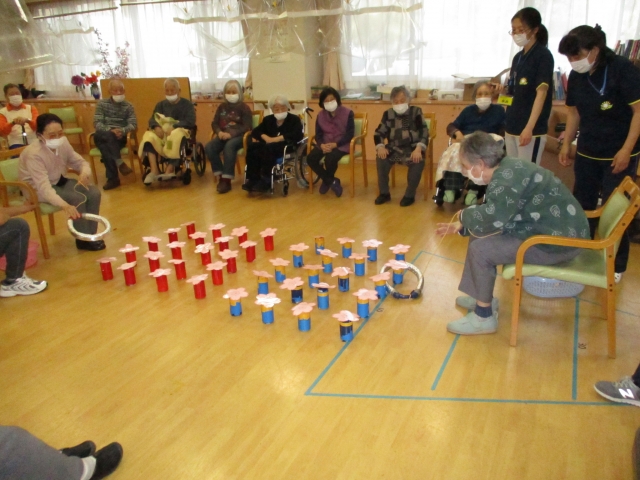 今日の運動レクレーションは『人間輪投げ』です!