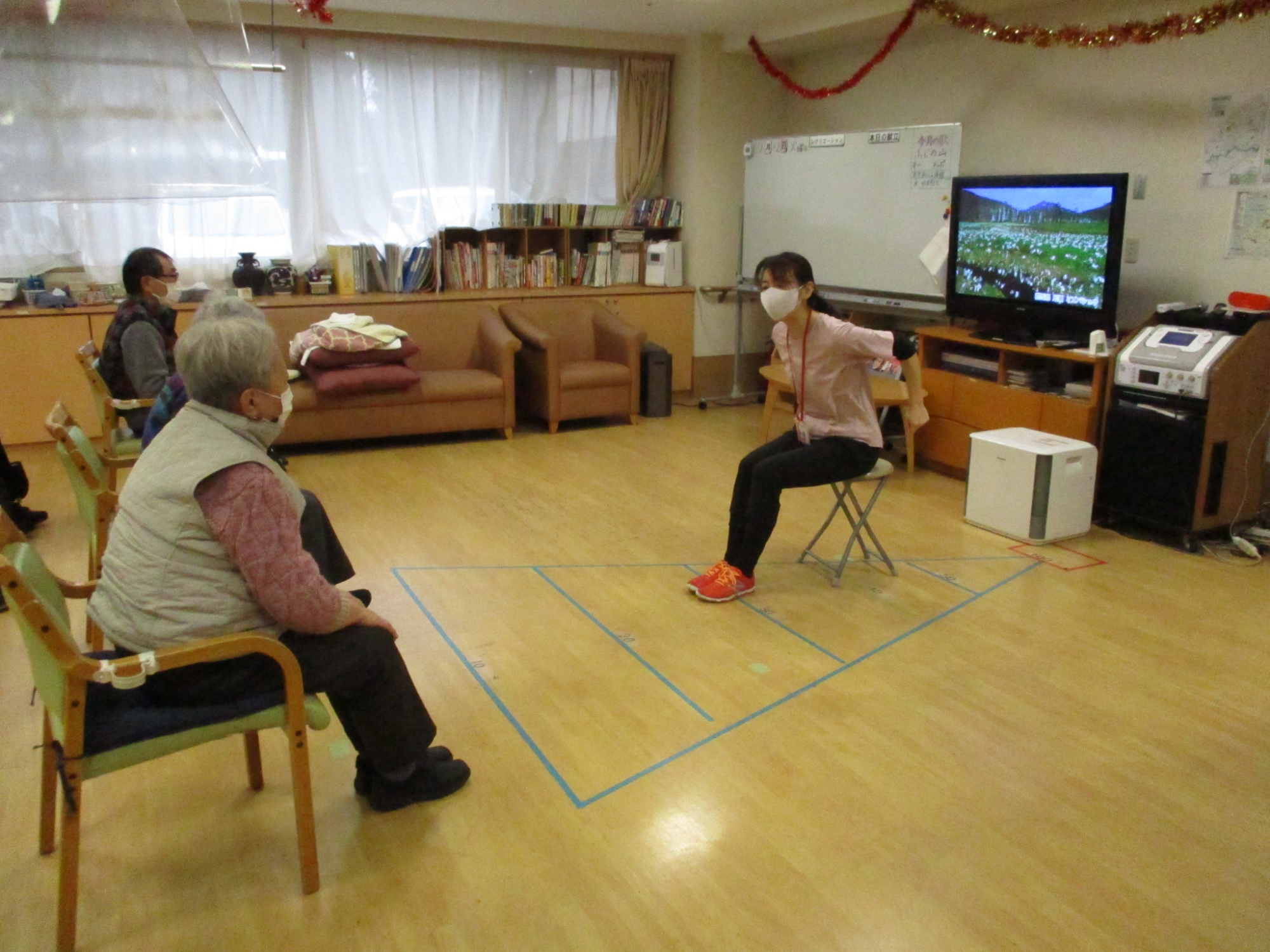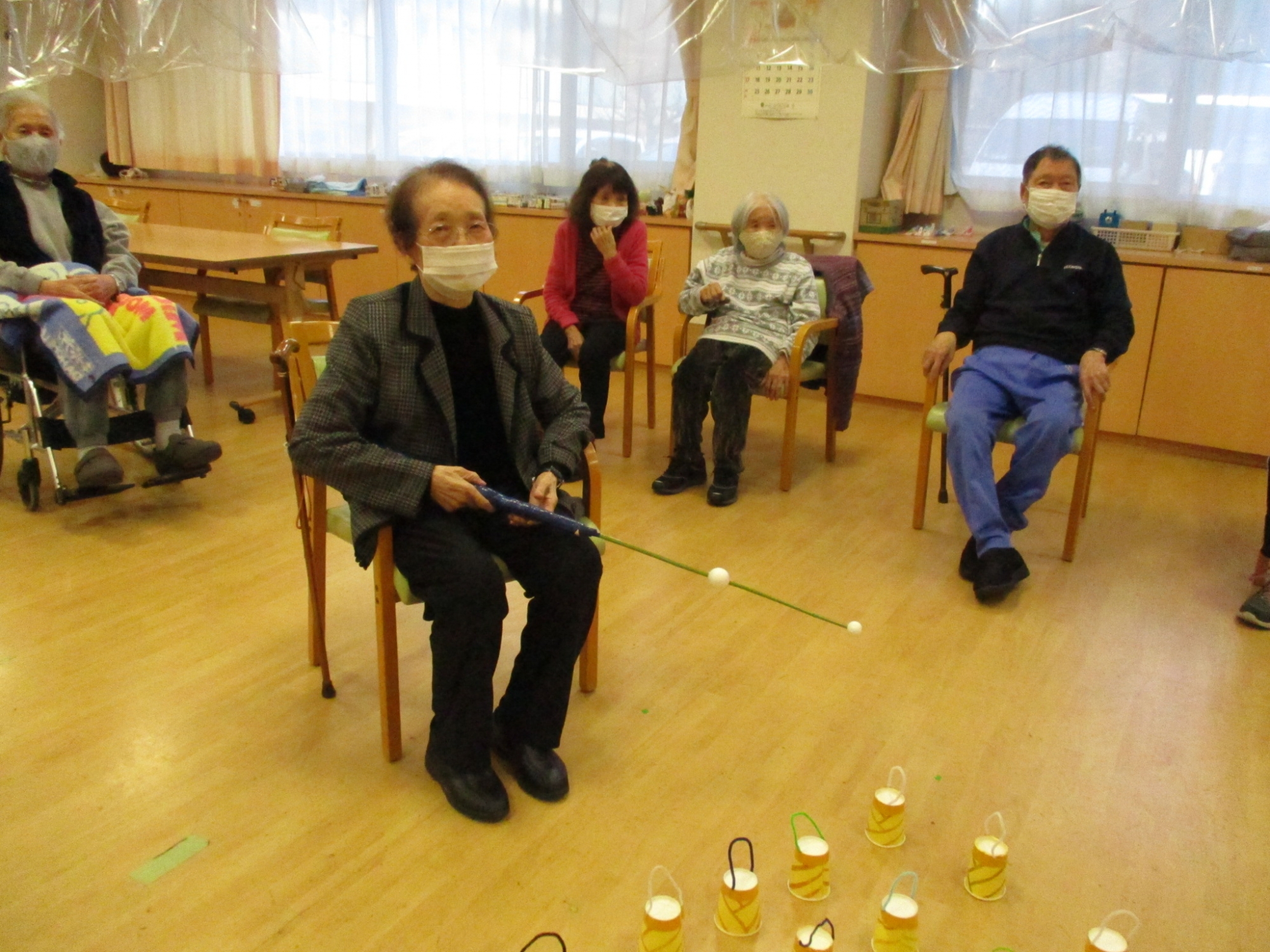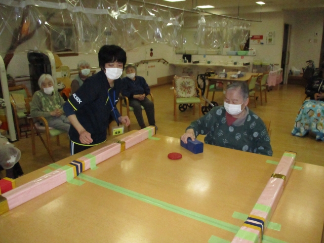 今日の運動レクレーションは『コロコロビンゴ』です!縦横並べばビンゴ!