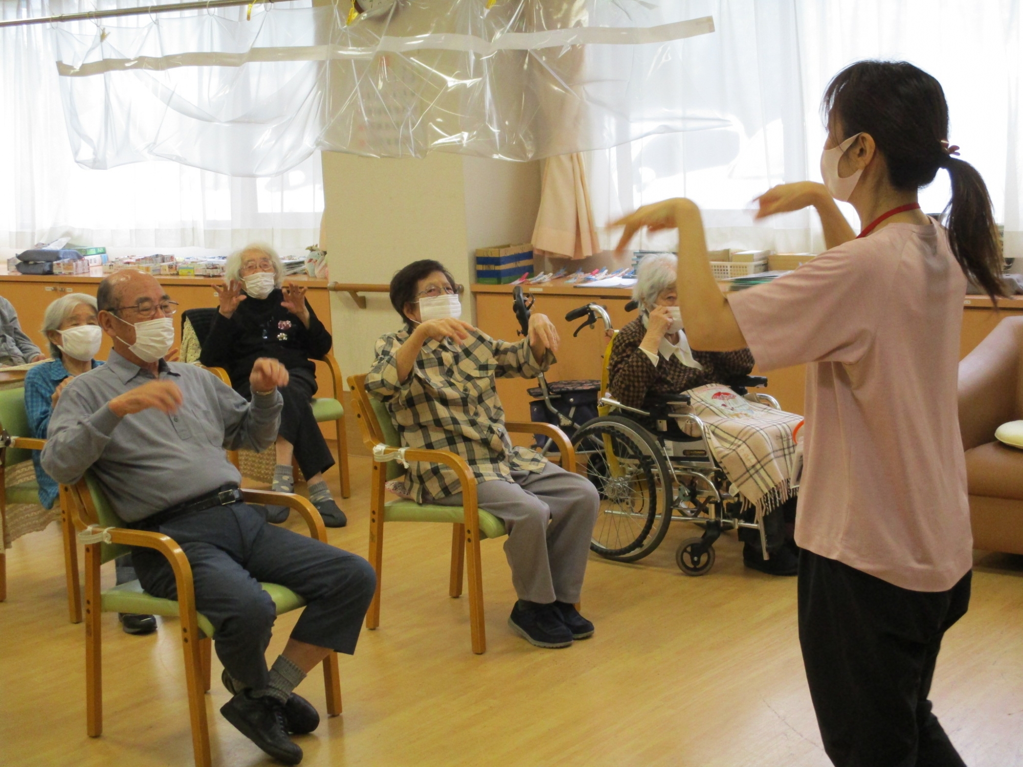NOA体操のインストラクターに合わせみんなで身体を動かしました!
