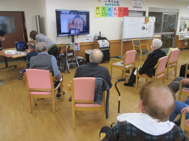今日のレクリエーションはリモートでタオル体操をしました。