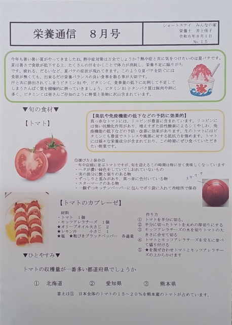 栄養通信 8月号