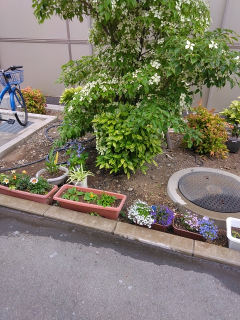 ゴーヤその後と駐車場の花