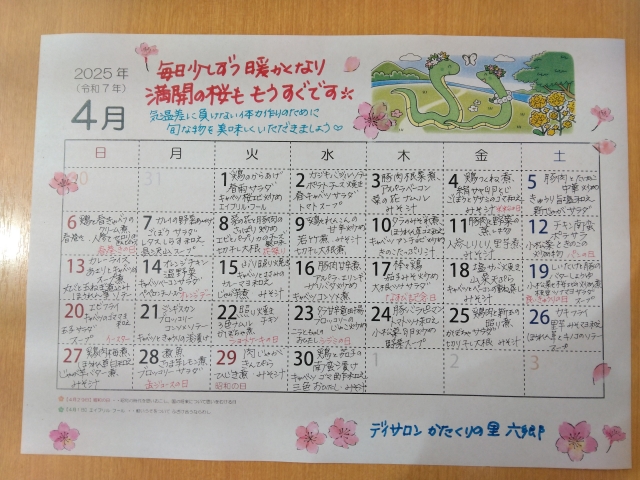 4月のメニュー!