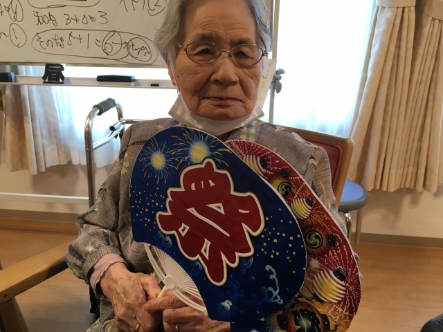 納涼祭に向けて、皆さんで協力してうちわ作りをしました♪