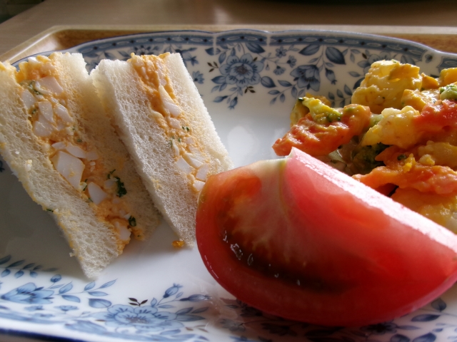 8/7 朝食は玉子サンド!メニューをアレンジしましてパン食に致しました!大好評~!