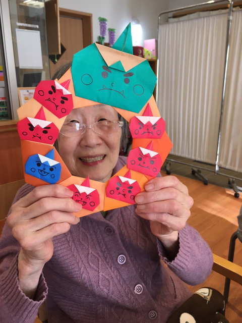 もうすぐ節分。折り紙で鬼を作りました。