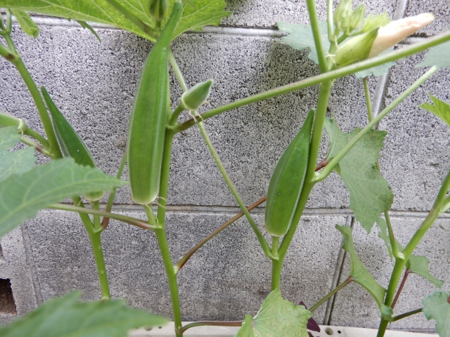 ホームで種から育てたオクラが立派に実りました!早速収穫して、うどんの彩として乗せ、頂きました!①