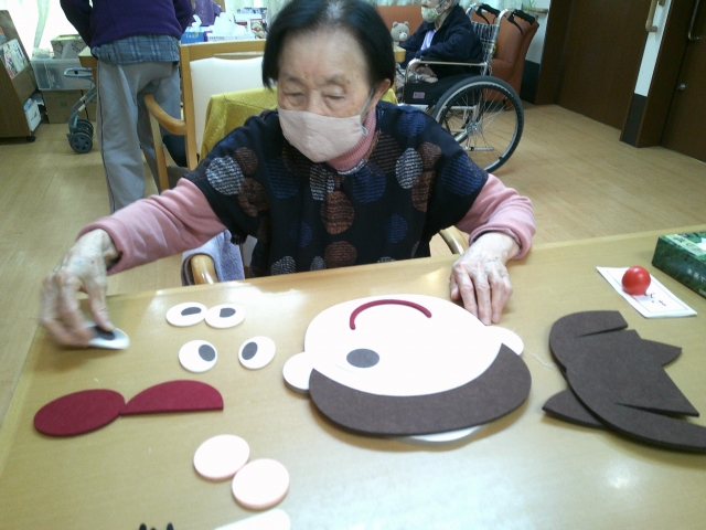 お正月レク(*'ω'*)♪1階 福笑い・おみくじ編♪