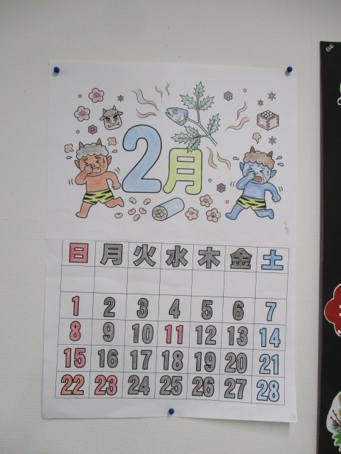 2階・2月のカレンダー作りのご様子です☆