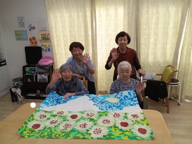 ちぎって貼って…ご入居者様みんなで取り組む制作レク!