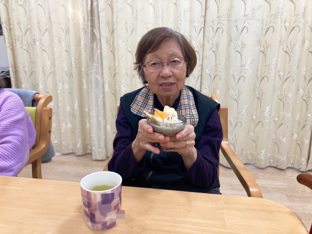 『ご入居者様の皆様でケーキを楽しみました』