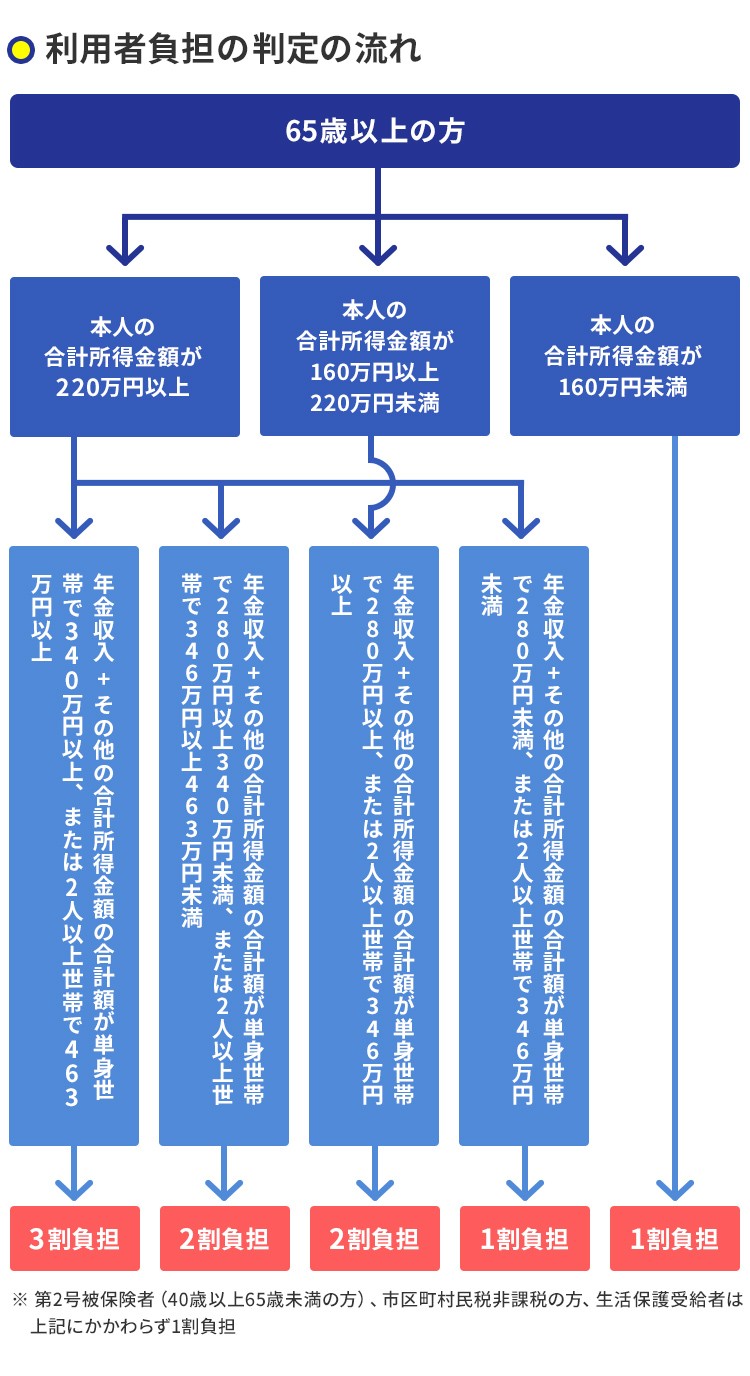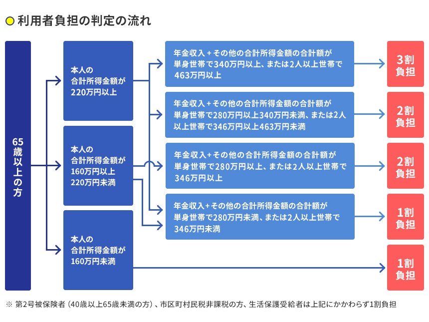 介護保険制度では、利用者は介護保険サービスでかかった費用のうち、1~3割を負担します。自己負担の割合は利用者の所得に応じて決まります。