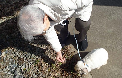 うさぎは犬や猫のように素早くないので、高齢者とのゆっくりした散歩に適しています。