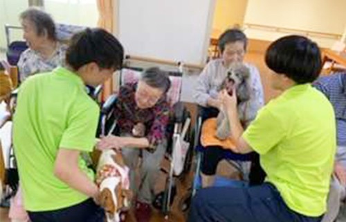動物という共通の話題がありますから、入居者同士の会話も自然と弾みます。無口な人の発語が増える、暗い表情の人が笑顔になるなどの効果が期待できます。