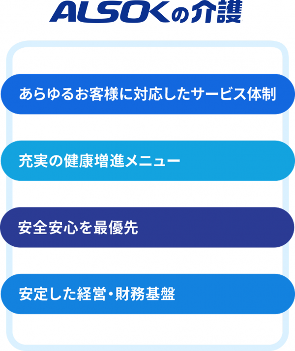 ALSOKグループの安定した経営・財務基盤により、経済環境の変動等に左右されない介護事業経営が可能です。