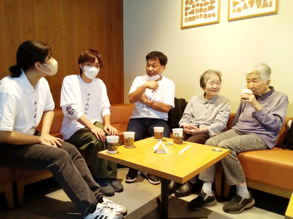チームおれんじ活動♪ 地域の方に認知症の事について知っていただけるよう地域活動に参加しています。スターバックスコーヒー南与野店様で交流中の一コマ