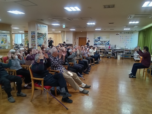 ボランティア様を招いてフラダンス、チアリーダー、リサイタルを行ったりお茶会、アフタヌーンティーなど職員がおもてなししたり、イベントに力を入れているデイサービスです。多くの方に好評いただいております。カラオケルームや機能訓練など設備が充実しており広々とした一般浴室、また寝台浴も完備しているので介護度に関係なく毎日ご入浴いただけます。