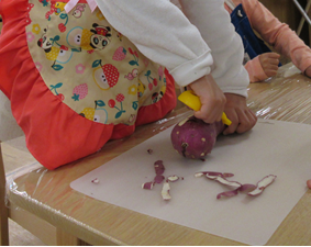 おやつの時間が近づくと給食室から、いい香りがしてきました~(*´з`)
