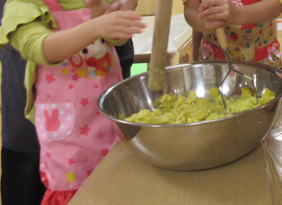 園では子どもたちと、スイートポテトを作りました。